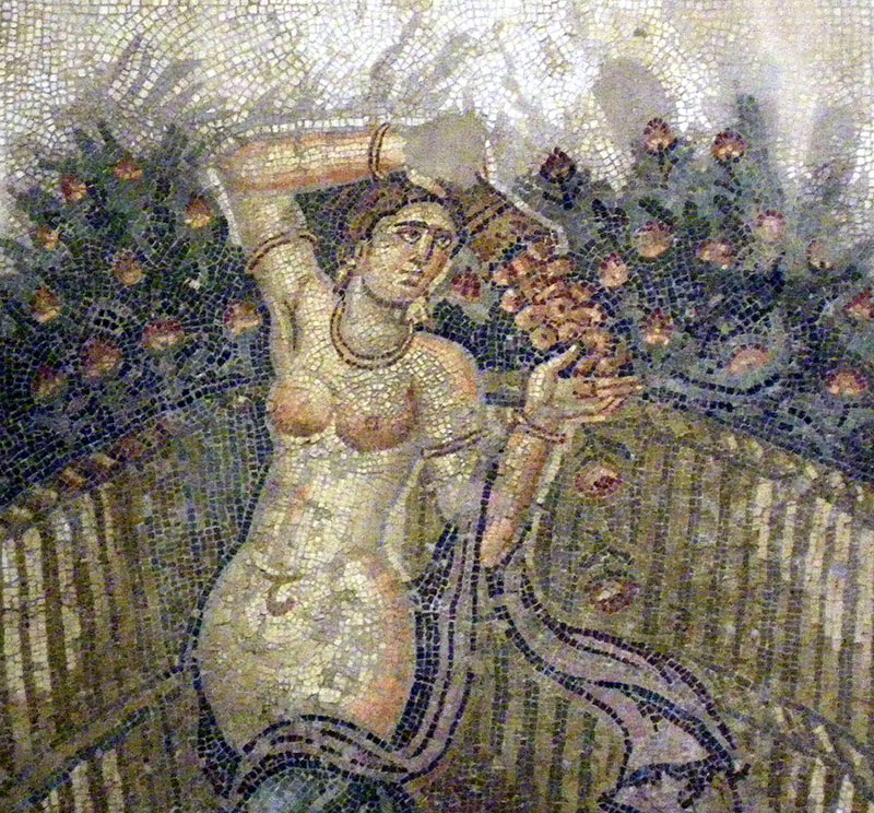 В Национальном музее Карфагена собрана большая коллекция римских мозаик из цветного камня. Эта мозаика изображает сцену сбора урожая роз.