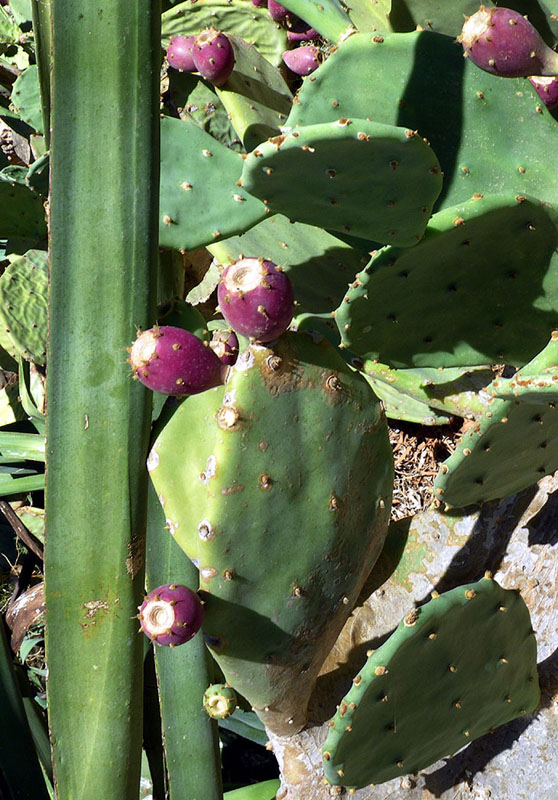 В зоопарке растут опунции с небольшими пурпурными плодами. Кажется, такую опунцию местные гиды-шутники называют «французской». Плоды очень мелкие, кислые, невкусные. У настоящей «тунисской» опунции плоды крупные, оранжевые, сладкие, и действуют на организм, как говорят, сильнее виагры. А от «французской» толку никакого.