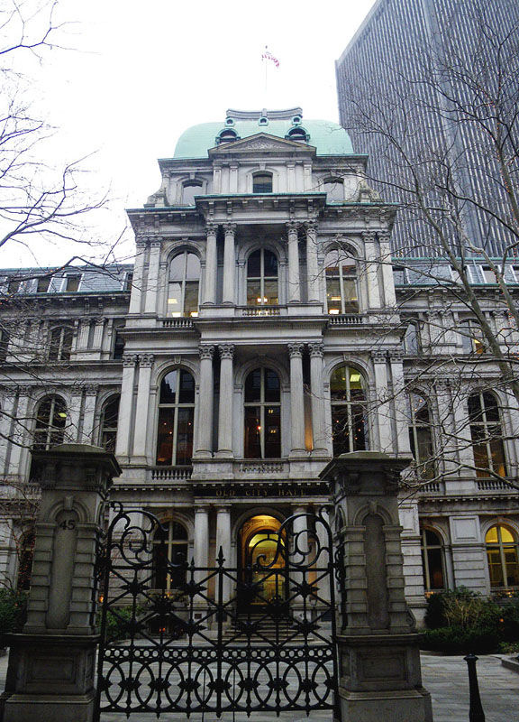Здание ратуши на Скул-стрит построено в 1862г в академическом стиле по проекту Г.Дж.Ф. Брайанта и А.Гилмана. Оно стало одним из первых зданий в США, построенных в стиле французской Второй Империи. Городской совет заседал в Старой ратуше вплоть до 1969г.