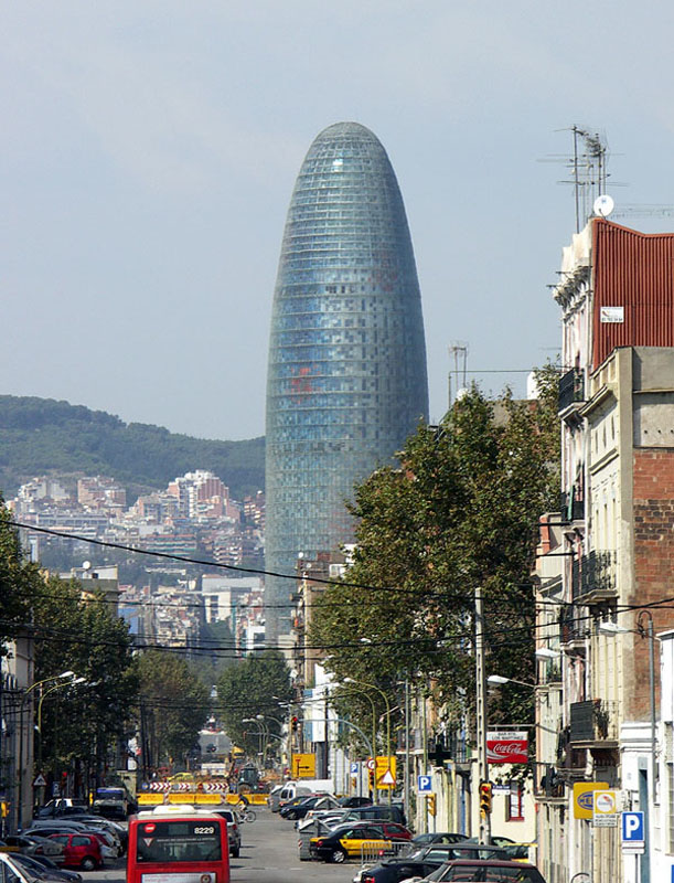 Небоскреб в форме скругленной кверху сигары, стоящий на Авенида Диагональ стал одной из достопримечательностей современной Барселоны. Он построен архитектором Жаном Нувелем на рубеже XX - XXIвв. и называется Торре Агбар, что означеет башня, принадлежащая Агуа Барселона, то есть ведомству, занимающемуся водоснабжением. 34 - этажное здание 142 метровой высоты - это бетонный небоскреб, состоящий из двух бетонных труб, вставленных одна в другую.