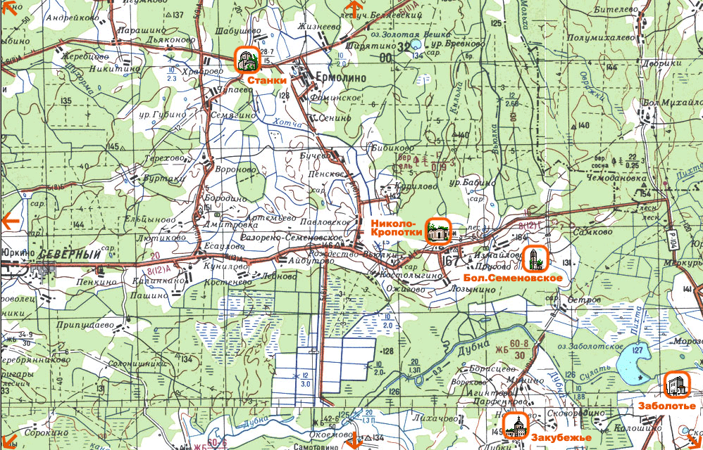 На лист 2 На лист 6 На лист 1 На лист 1 На лист 6 На лист 7 Церковь Покрова в Заболотье, 1756г., трапезная с приделами 1804г. Церковь Преображения в Закубежье, 1833г., ампир Церковь Симеона Столпника в Б.Семеновском, 1844-1856гг., классицизм Казанская церковь в Николо-Кропотках, 1863г., эклектика Георгиевская церковь в Станках, 1796-1807гг., ранний классицизм